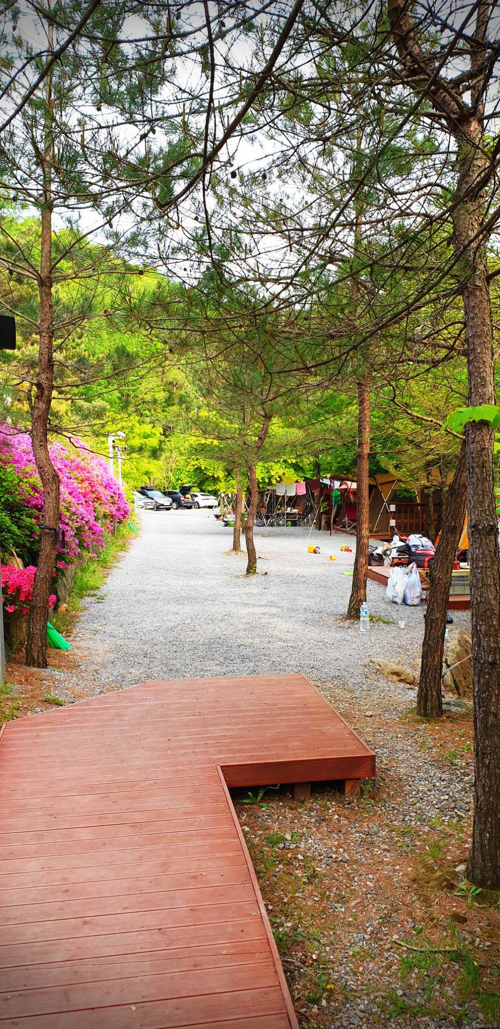 캠핑장에도 주차장이 있지만 주차 가능 대수가 부족하기 때문에 펜션 입구 쪽 혹은 펜션의 제일 끝에 위치한 주차장에 주차를 해야 한다.