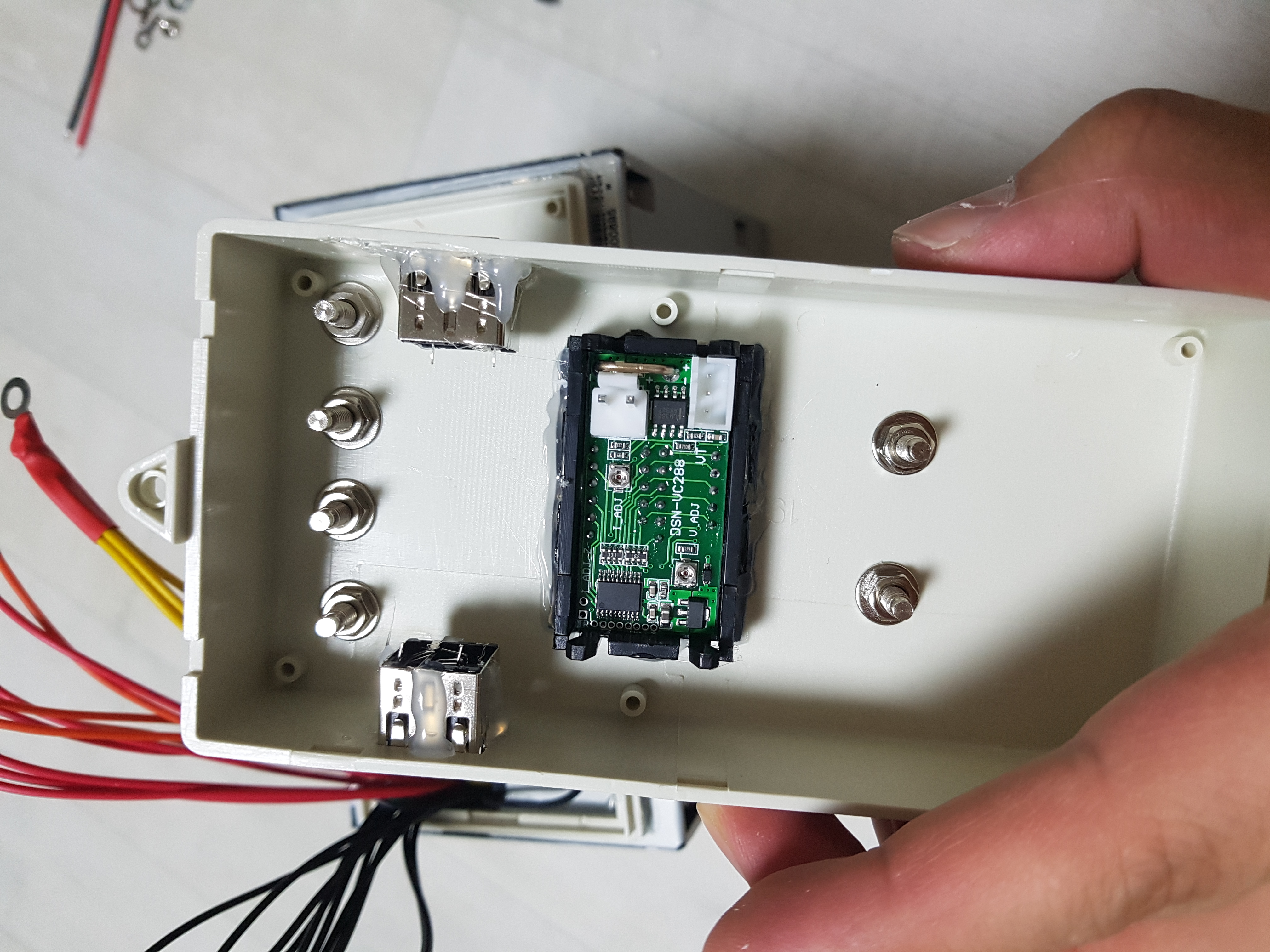 다음은 가변전압과 전압,전력을 모니터링할 메터기를 설치할 구멍을 뚫어준다.