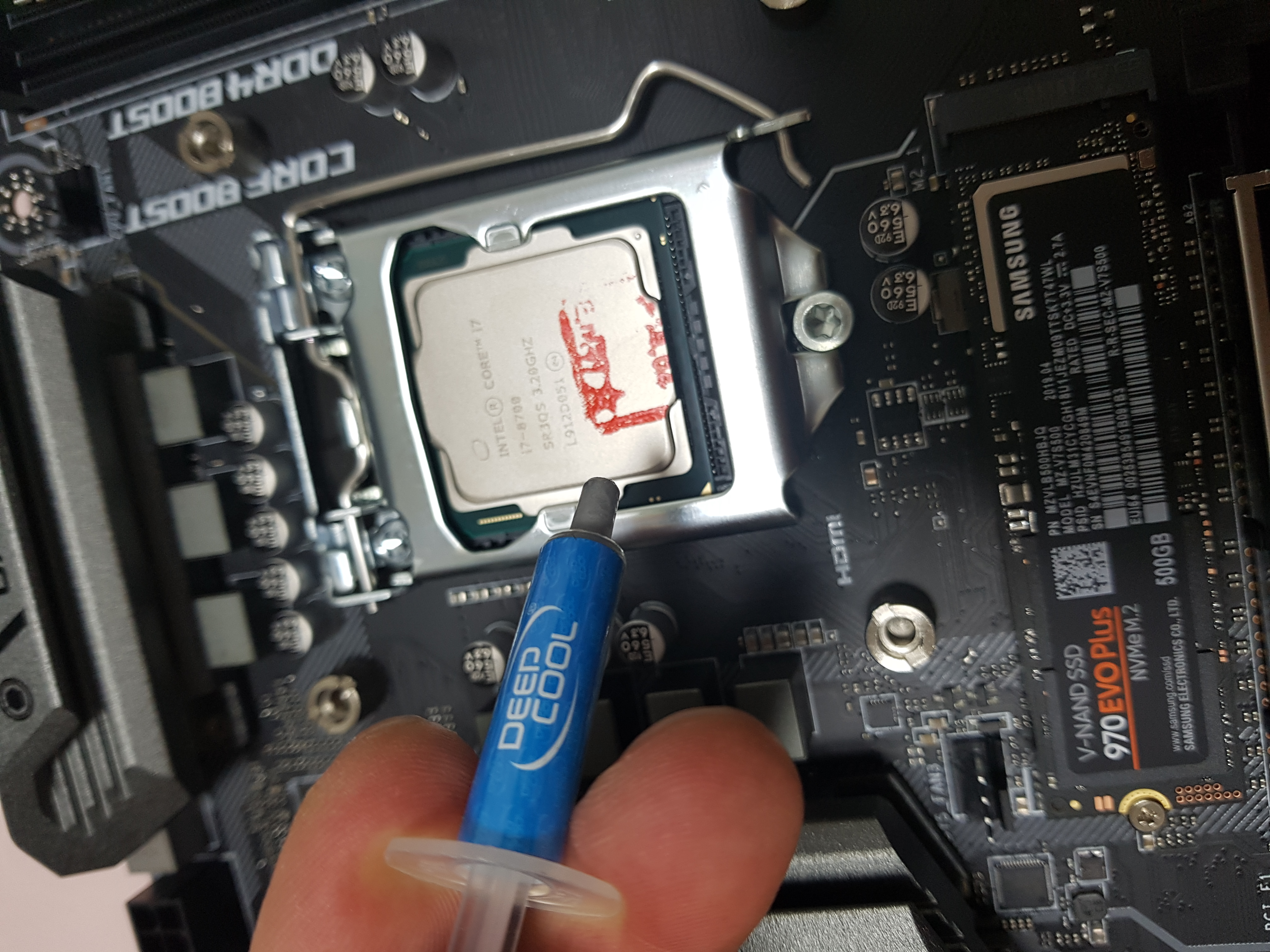 조립을 하는데 있어서 가장 먼저 보드에 기본적인것 ( CPU, 쿨러, 메모리, M2 디스크) 를 장착할 시간이다.
