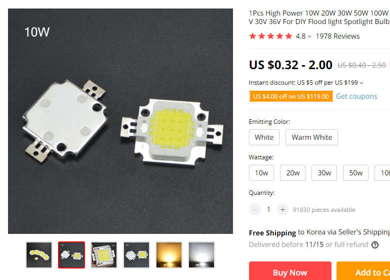 스펙상 칩 하나당 900루멘이라고 나와있다.