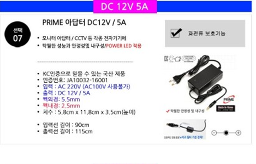 최대 5A급 어댑터와 연장 케이블을 구매했다.
