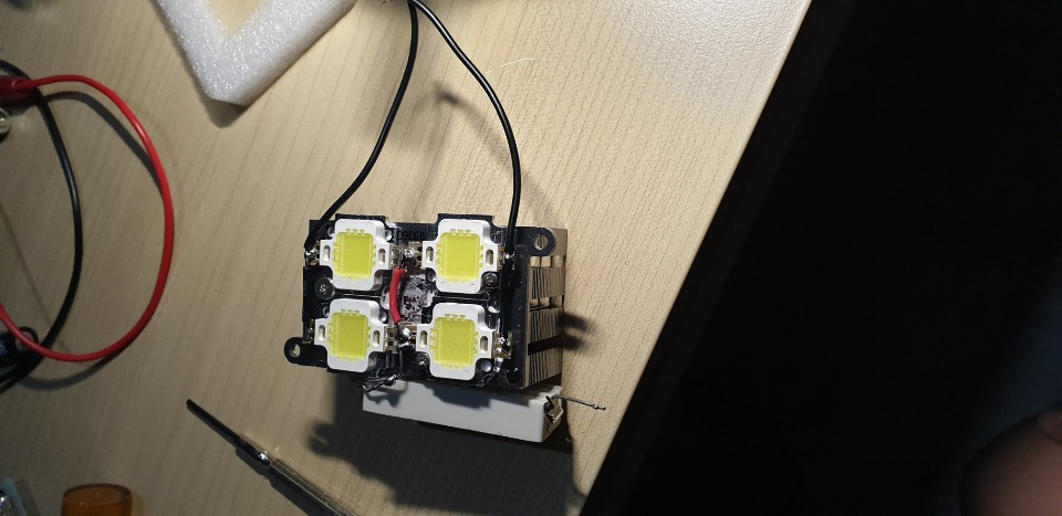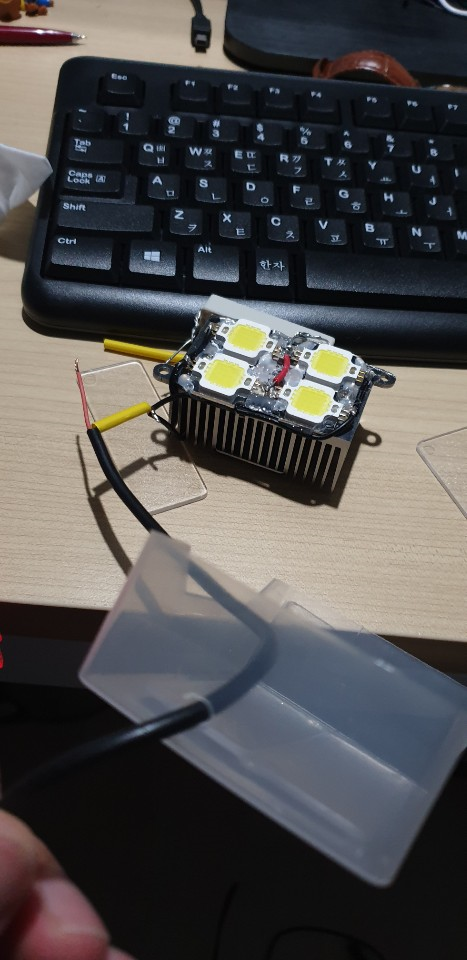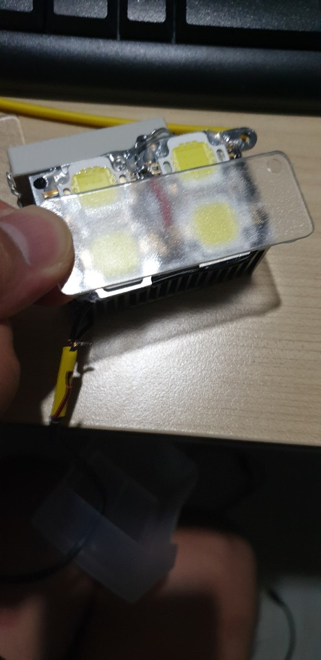 LED칩이 어떤 상황에서도 잘 고정되어있을수 있도록 방열판에 드릴로 구멍을 뚫고 그 위에 LED칩을 고정시켜주었다.