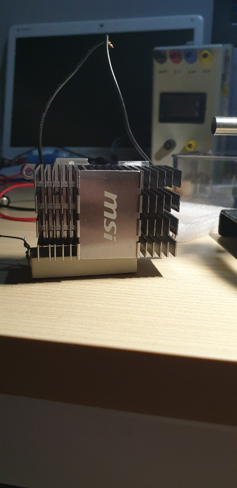 발열을 잡아주기 위해 오래된 컴퓨터 보드에서 방열판을 하나 떼어냈다.