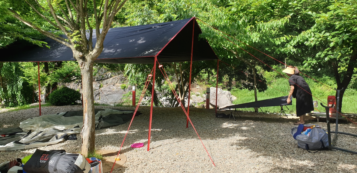사이트의 공간도 넓어서 타프각을 잘 살려 피칭할수 있어 너무 좋다.