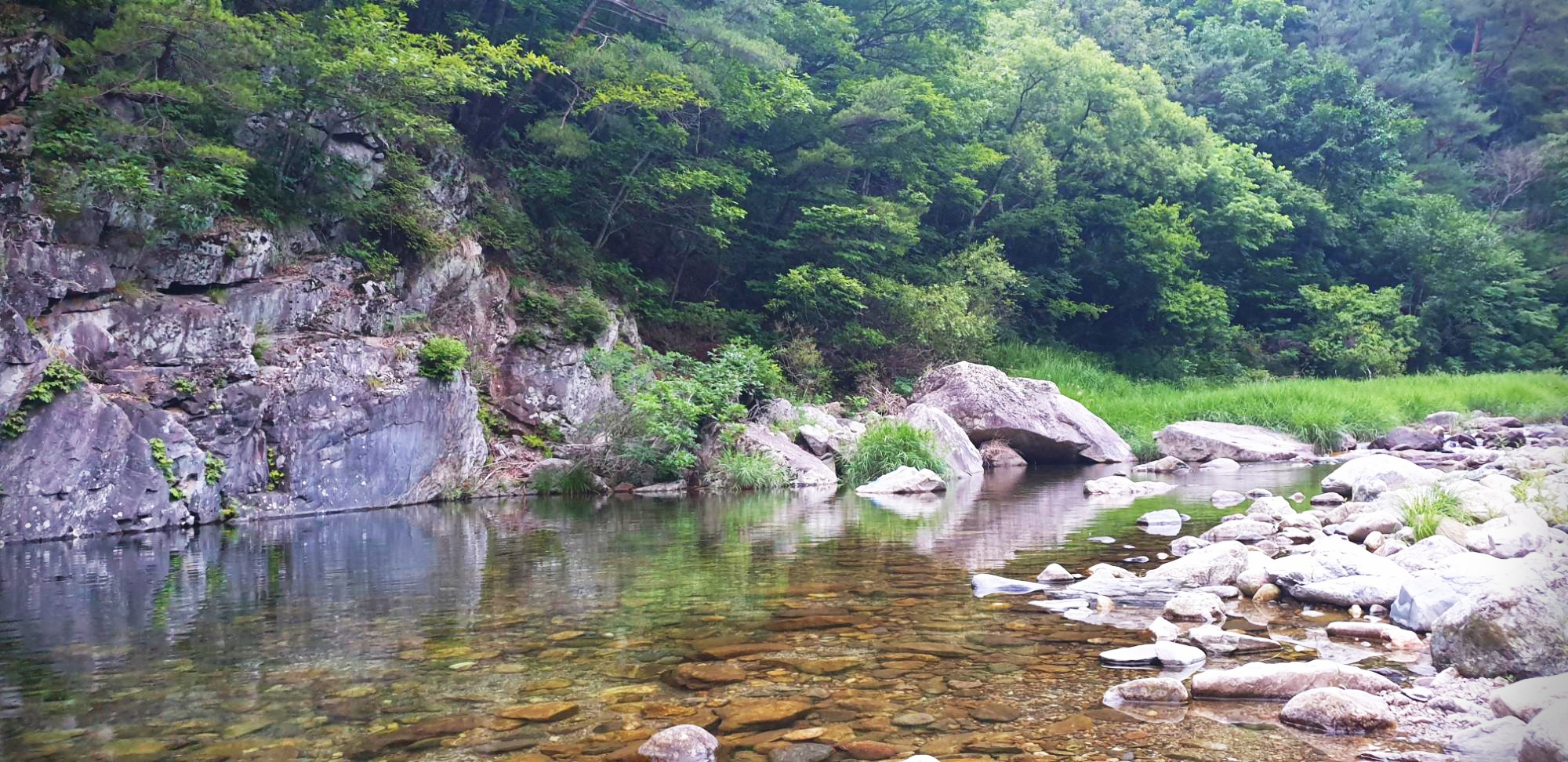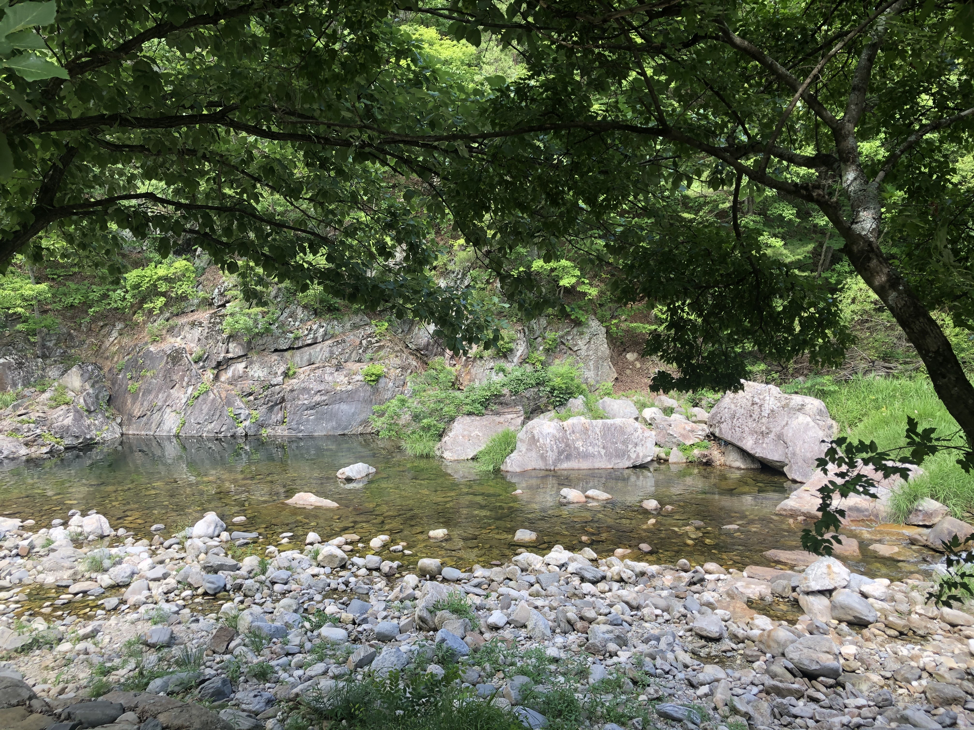 계곡 물은 깨끗하며 물고기가 굉장히 많다.