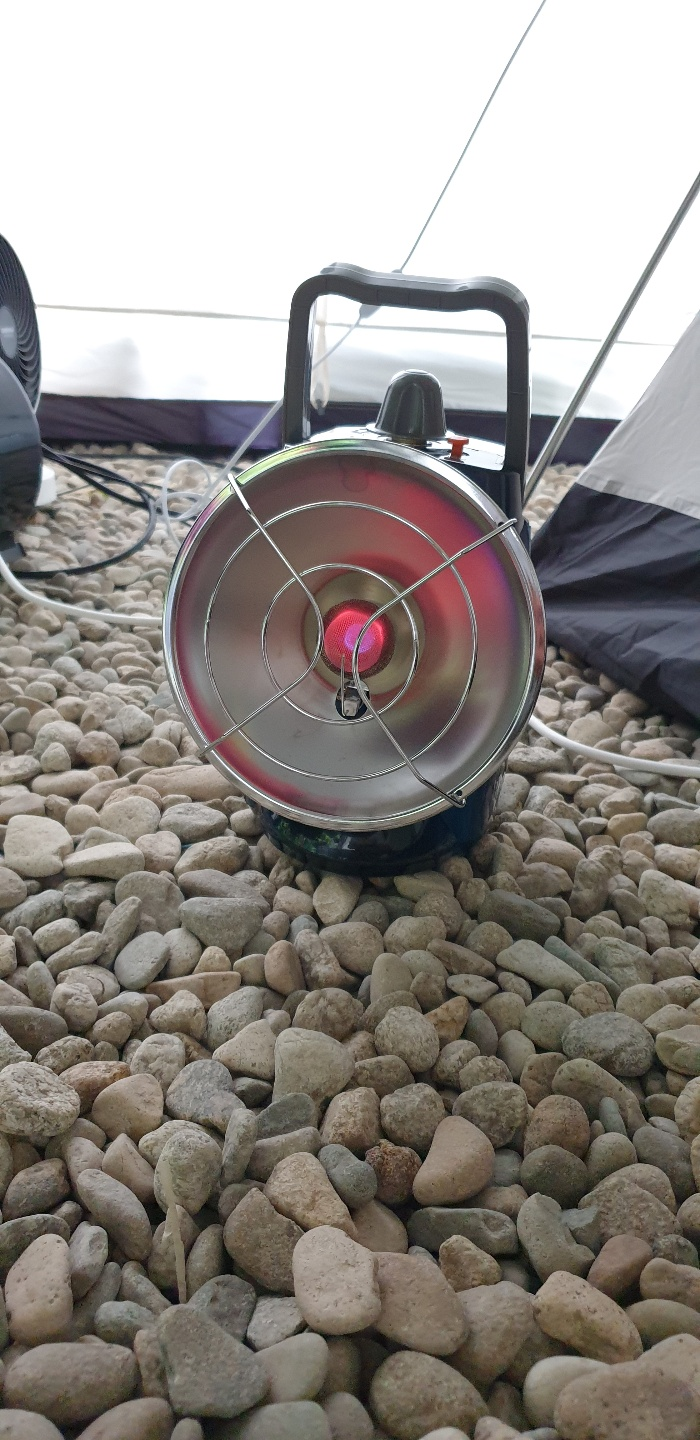 가스통 하나에 12시간 정도 사용했고 툴콘과 같이 켜놓으니 비가 오는날씨에도 쉘터 안에서 빨래가 마를정도였다.