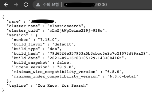 브라우저에서 http://서버의 주소:9200 으로 테스트를 해본다.