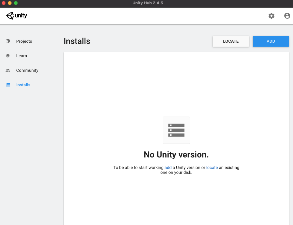 2. 유니티를 실행하고 Installs 에서 필요한 파일을 설치한다.