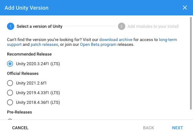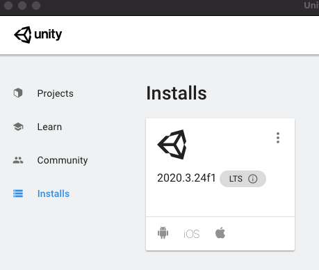 따라서, 유니티 작업물의 버전에 맞춰서 설치를 해야한다.