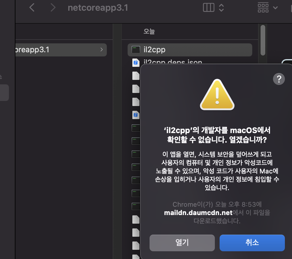 맥이 업데이트 되고 나서 환경설정 > 보안 > 일반에서 확인되지 않은 모든 앱 실행 허용 옵션이 사라져서 어쩔수없이 문제가 되는 파일을 하나씩 엑세스를 해줘야한다.