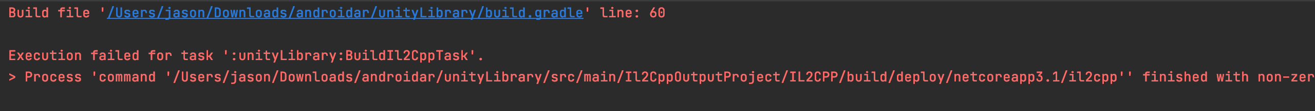 il2cpp finished with non-zero exit value