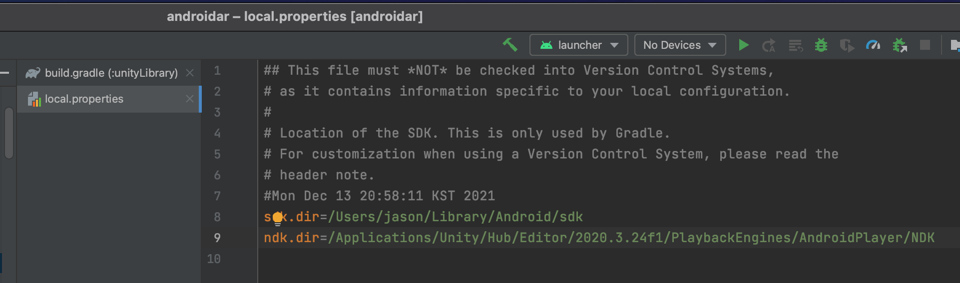 local.properties 에서 ndk.dir 을 위와 같이 설정한다.