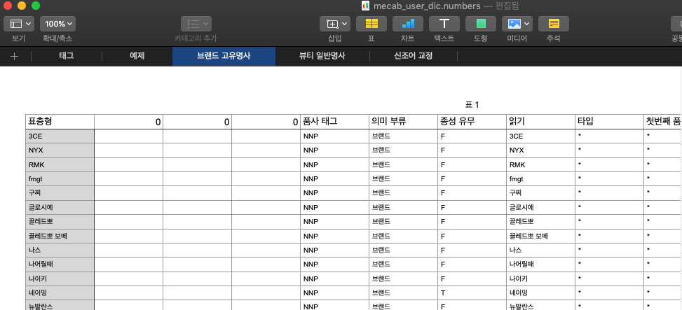 필자는 브랜드명 고유명사와 뷰티분야의 일반 명사들, 그리고 인터넷 신조어를 관리하기 위해 파일 3개를 추가했다.