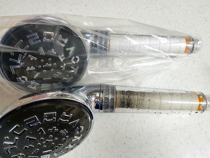 [ 소나기 비타퓨어 제품의 새제품과 6개월 사용후 사진. ]