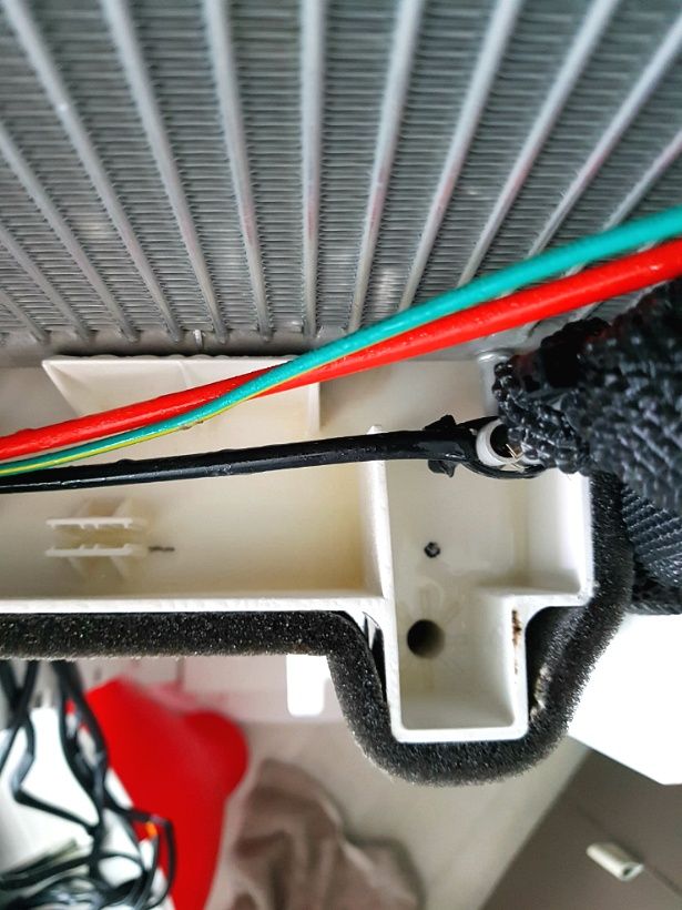 소다수를 냉각핀에 뿌릴때 뒤쪽 뚤린 부분으로 물이 튀지 않도록 수건으로 가릴것.