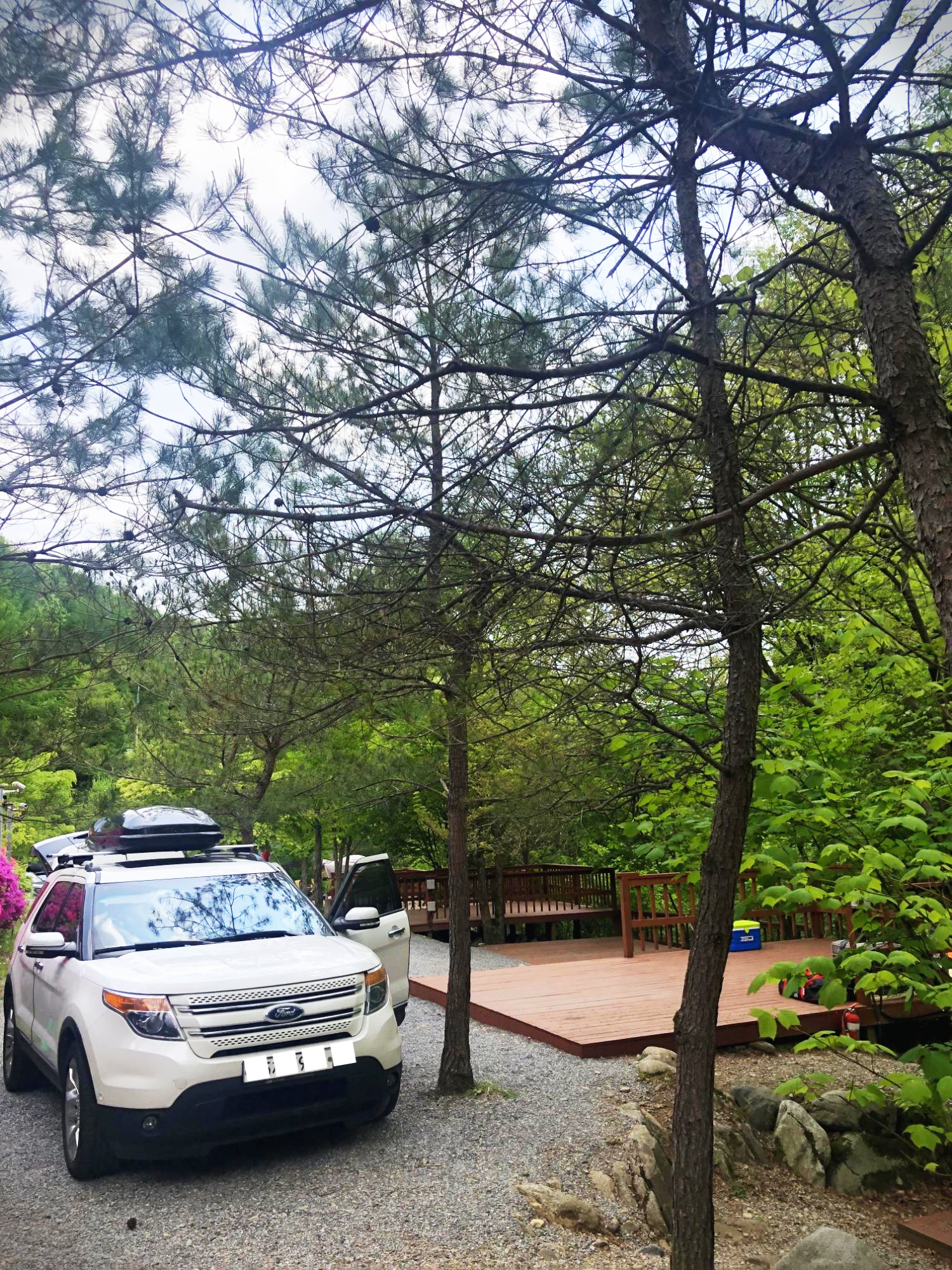 캠핑장에도 주차장이 있지만 주차 가능 대수가 부족하기 때문에 펜션 입구 쪽 혹은 펜션의 제일 끝에 위치한 주차장에 주차를 해야 한다.