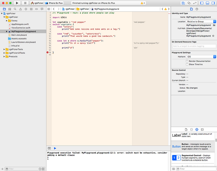 Playground execution failed: MyPlayground.playground:12:1: error: switch must be exhaustive, consider adding a default clause